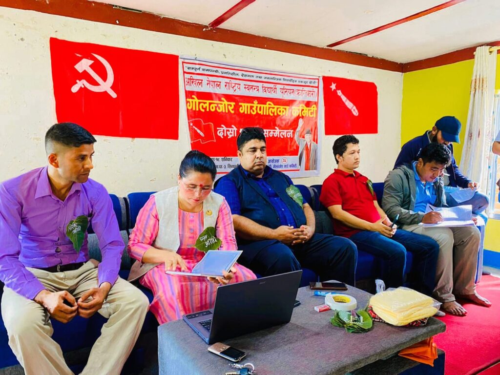 अखिल नेपाल राष्ट्रिय स्वतन्त्र विद्यार्थी युनियन (क्रान्तिकारी) गोलान्जोर गाउँपालिका दोश्रो सम्मेलन बागमती प्रदेश सभा सांसद माननीय शुष्पा भुजेल न्यौपानेकाे प्रमुख आतिथ्यता,पार्टीकाे बागमती प्रदेश कमिटी सचिवालय सदस्य एवं गाेलन्जाेरका उपाध्यक्ष ज्वाला प्रसाद न्याैपाने (पुकार) , केपि पाेखरेल र अनेरास्वबियु क्रान्तिकारी का केन्द्रीय सदस्य जिल्ला इन्चार्ज भानुभक्त श्रेष्ठ काे आतिथ्यतामा हेमराज बरालको अध्यक्षतामा २५ सदस्य कमिटी गठन सम्पन्न नव गठित कमिटीका संपूर्णलाई सफल कार्यकालको शुभकामना।