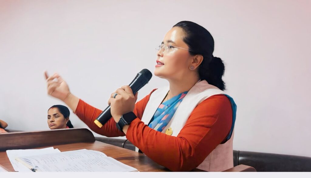 जिल्ला समन्वय समिति सिन्धुलीद्वारा आयोजित महिला नेतृत्वमा समस्या, चुनौती विषयक अन्तरक्रिया कार्यक्रमका प्रमुख अतिथि बागमती प्रदेश सांसद माननीय सुष्पा भुसेल न्यौपाने आफ्नो विषयवस्तु राख्नुहुँदै।